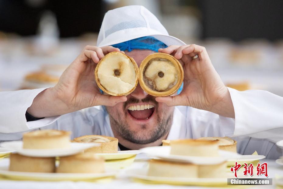 當(dāng)?shù)貢r(shí)間2019年11月20日,英國蘇格蘭丹弗姆林(Dunfermine),第21屆世界蘇格蘭派錦標(biāo)賽在當(dāng)?shù)嘏e行。據(jù)悉,參賽作品被分為包括足球餡餅、咸味小吃和通心粉派等11個(gè)種類。圖片來源:視覺中國