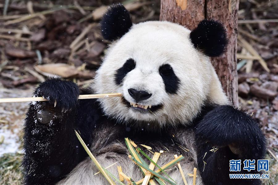 11月29日,在西寧熊貓館內(nèi),一只大熊貓在吃竹子。 新華社記者 吳剛 攝
