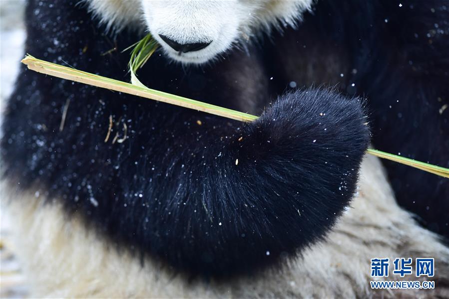 11月29日,在西寧熊貓館內(nèi),一只大熊貓在吃竹子。 新華社記者 吳剛 攝