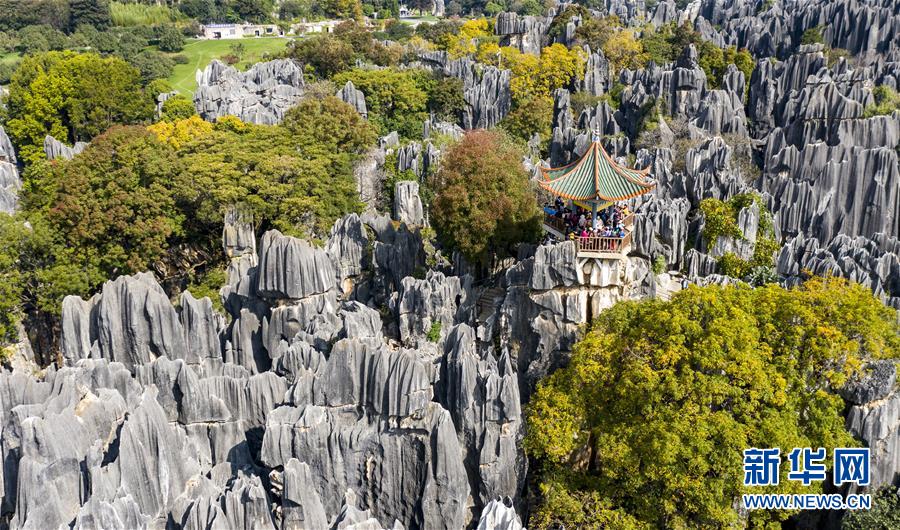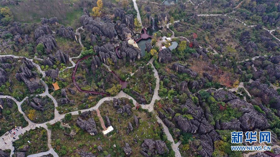 11月28日,空中俯瞰石林景區(qū)(無人機(jī)拍攝)。新華社記者江文耀攝