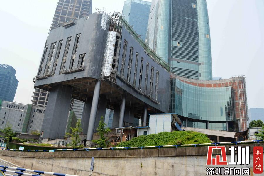 2019年6月12日,重慶臨江門的高盛創(chuàng)富中心1樓位于嘉陵江濱江路,但如果坐電梯上到27樓,則可以通過空中廊橋到達(dá)的魁星樓城市休閑廣場(chǎng)以及北區(qū)路。這兩座空中廊橋的不遠(yuǎn)處,可以看到圣地大廈的空中廊橋。