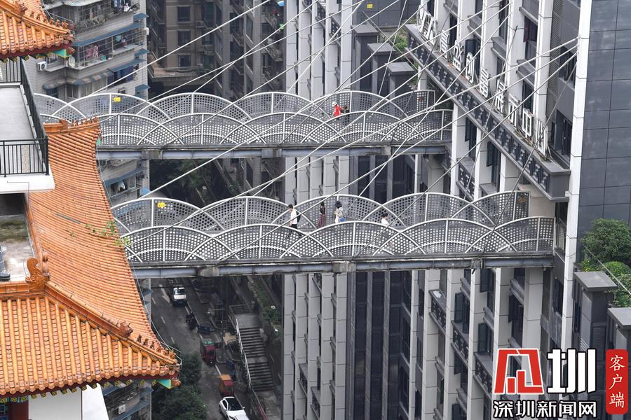 2018年4月11日,重慶市渝中區(qū)東營(yíng)街,一座人行天橋離地40米,在半空中呈“S型”繞樓而過,好似一條飛揚(yáng)的絲帶。該天橋橋面寬約2米,長(zhǎng)約70米,連接大陽(yáng)溝派出所和鑫龍大廈的13樓,中間僅靠一根水泥墩支撐。