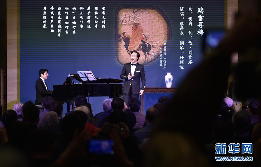 12月10日晚,廖昌永在音樂會(huì)上演唱《踏雪尋梅》。 當(dāng)晚,中國古典詩詞與書畫——廖昌永中國藝術(shù)歌曲獨(dú)唱音樂會(huì)在北京中國美術(shù)館舉行。 新華社記者 魯鵬 攝