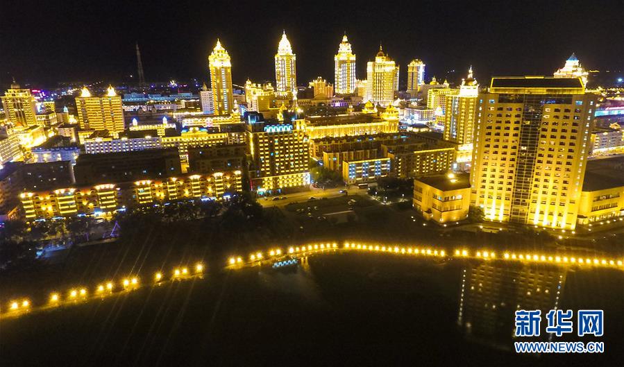 8月28日無(wú)人機(jī)拍攝的滿洲里市中心夜景。滿洲里市位于呼倫貝爾大草原腹地。新華社記者彭源攝