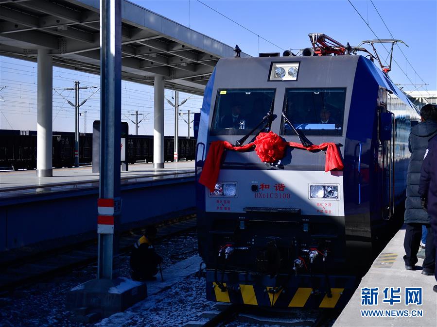 12月18日,在青海格爾木,列車駛出格爾木站。當(dāng)日,隨著肅北至馬海區(qū)段通車,敦煌鐵路全線開通運營,中國西北地區(qū)形成首條環(huán)形鐵路網(wǎng)。新華社記者張龍攝