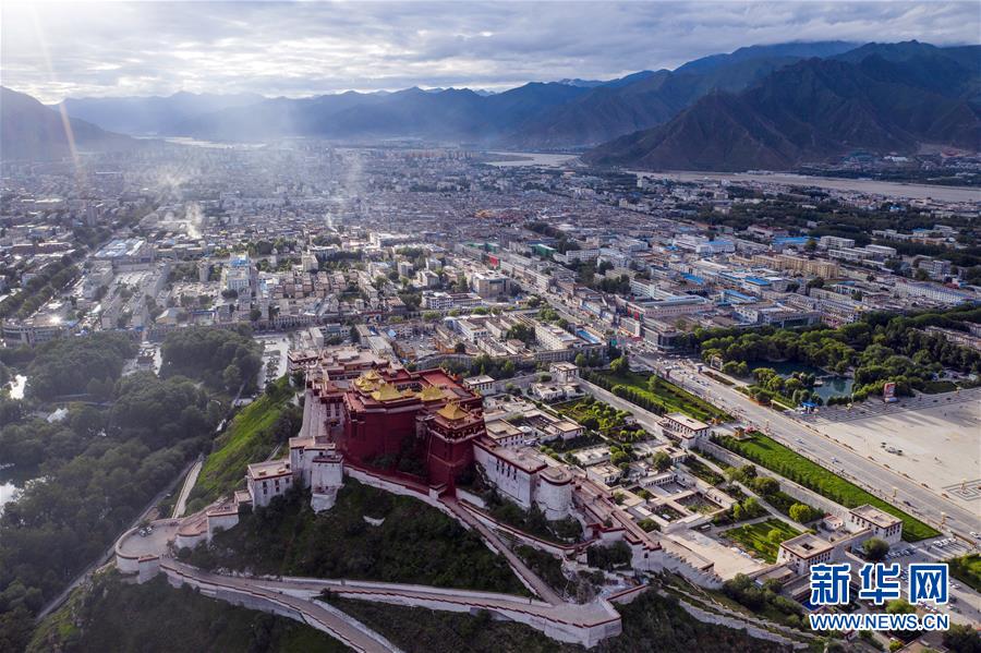 鳥瞰拉薩古城(8月10日無人機拍攝)。新華社記者普布扎西攝