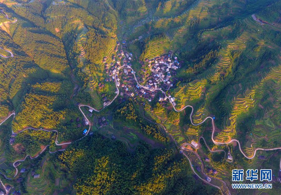 這是融水苗族自治縣桿洞鄉(xiāng)黨鳩村烏英苗寨的公路(4月18日無人機拍攝)。新華社記者黃孝邦攝