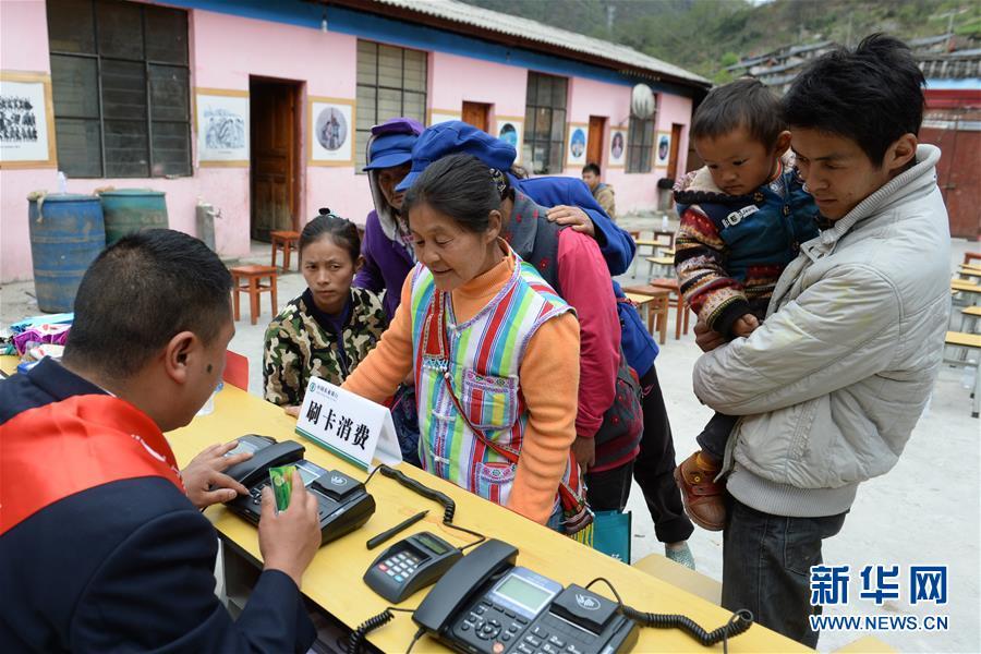 獨(dú)龍族群眾在辦理金融業(yè)務(wù)(2015年3月25日攝)。新華社記者胡超攝