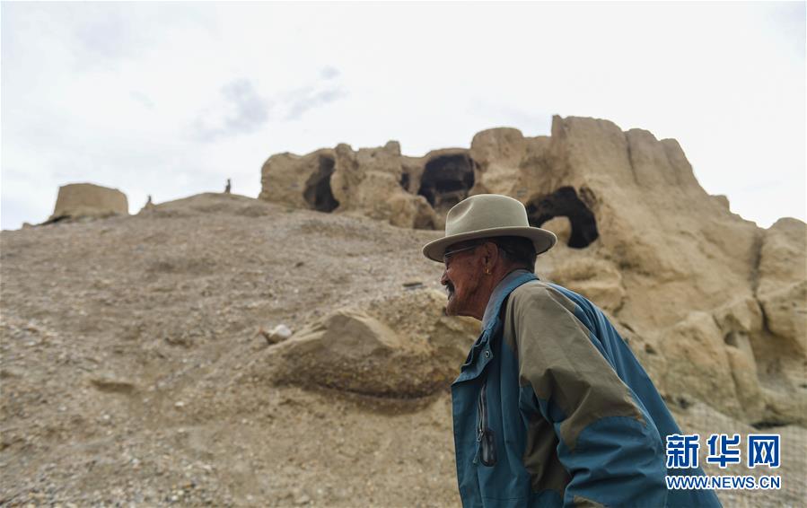 76歲的達(dá)瓦次仁走過古格遺址前的洞窟,這里曾是他的家(7月30日攝)。新華社記者晉美多吉攝