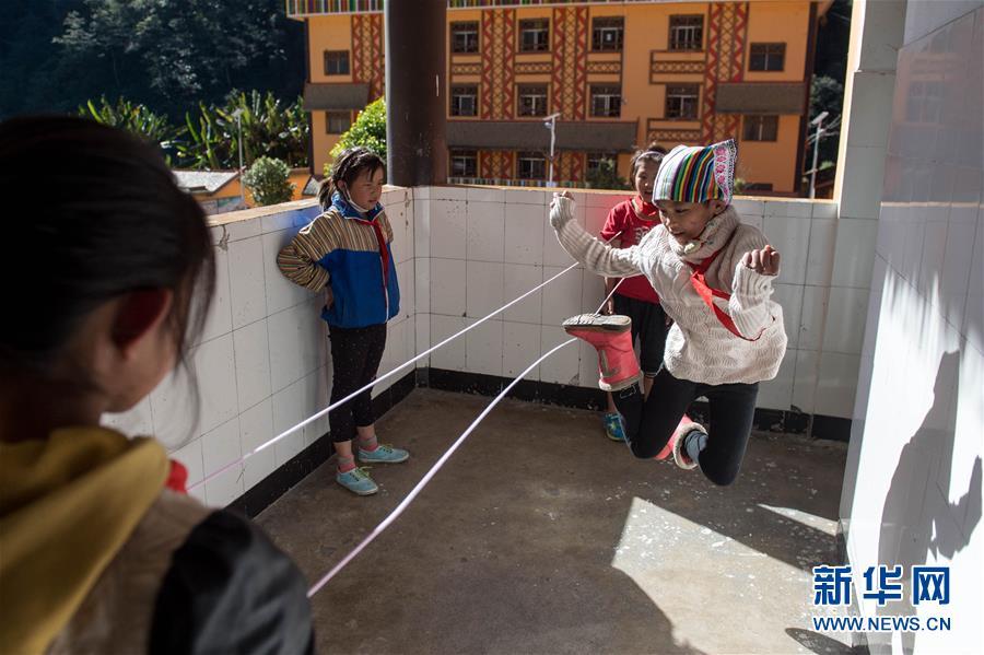 在獨(dú)龍江鄉(xiāng)中心小學(xué),孩子們?cè)谔そ睿?016年11月23日攝)。新華社記者胡超攝