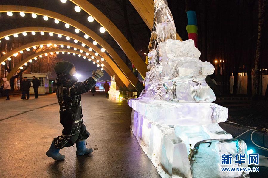 12月24日,在俄羅斯首都莫斯科,小朋友參觀冰雕藝術(shù)展。 哈爾濱冰雕藝術(shù)展24日在莫斯科開幕,現(xiàn)場(chǎng)展出了哈爾濱大劇院、防洪紀(jì)念塔以及莫斯科紅場(chǎng)建筑群等惟妙惟肖的冰雕作品,吸引眾多游客駐足拍照。 參加本次冰雕藝術(shù)展的十名冰雕師提前抵達(dá)莫斯科,以新中國(guó)成立70周年、中俄建交70周年、“一帶一路”倡議等為主題,為莫斯科民眾奉上了精美的新年禮物。 新華社記者 白雪騏 攝