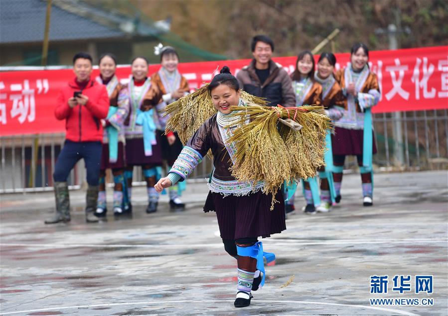 12月25日,苗族婦女參加挑禾把比賽。 新華社記者 王諾 攝