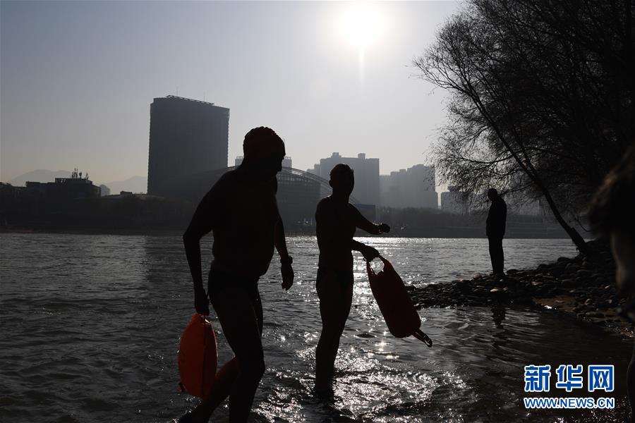 12月21日,冬泳愛(ài)好者游完上岸。新華社記者陳斌攝