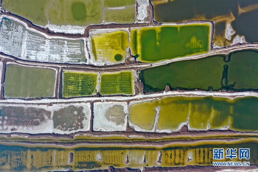 12月27日無人機拍攝的山西運城鹽湖。 冬日時節(jié),從空中俯瞰位于山西省運城市的鹽湖,景色如畫。 新華社記者曹陽攝