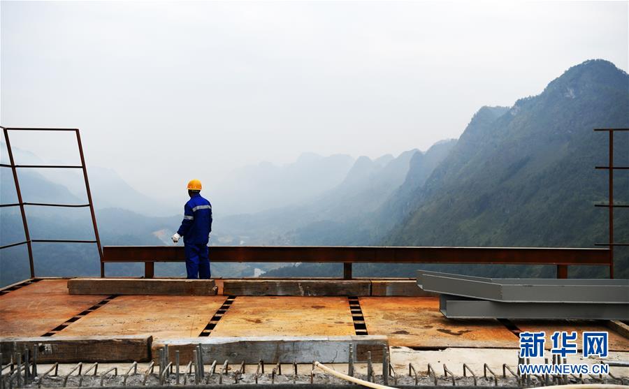 9月26日,一名建設者在平塘特大橋上眺望。新華社記者楊文斌攝