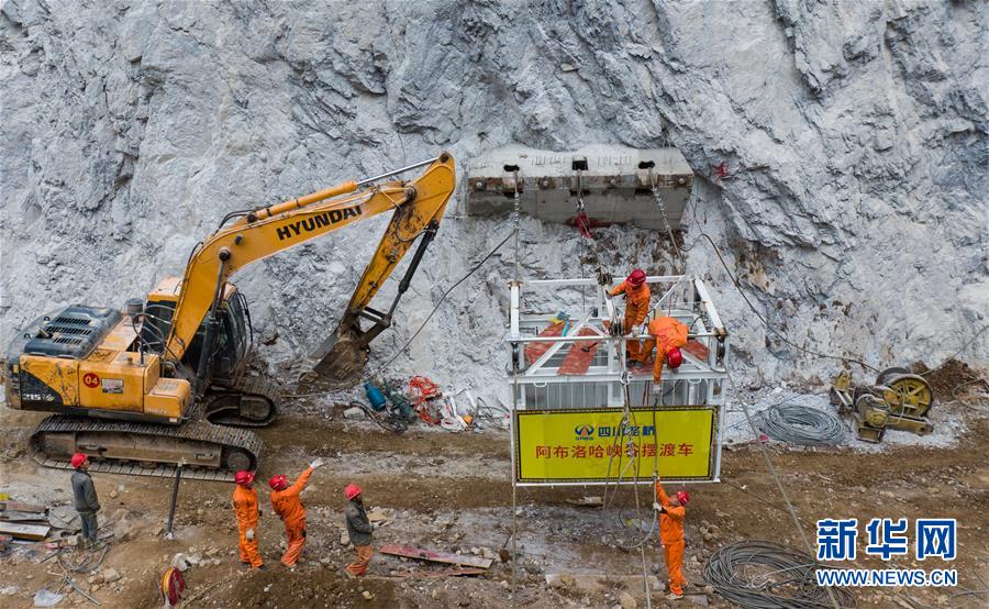 四川路橋的施工隊伍在對阿布洛哈村擺渡車進(jìn)行最后的安裝和調(diào)試(2019年12月27日攝)。新華社記者江宏景攝