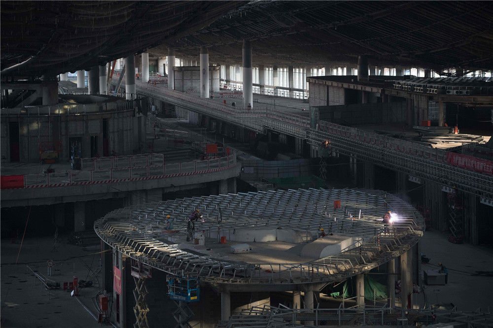 2018年8月30日,北京,攝影師在媒體開放日拍攝到北京大興在建新機(jī)場的航站樓內(nèi)部構(gòu)造。該機(jī)場預(yù)計(jì)將于2019年完工,屆時將成為世界上最大的機(jī)場之一。NICOLAS ASFOURI /視覺中國