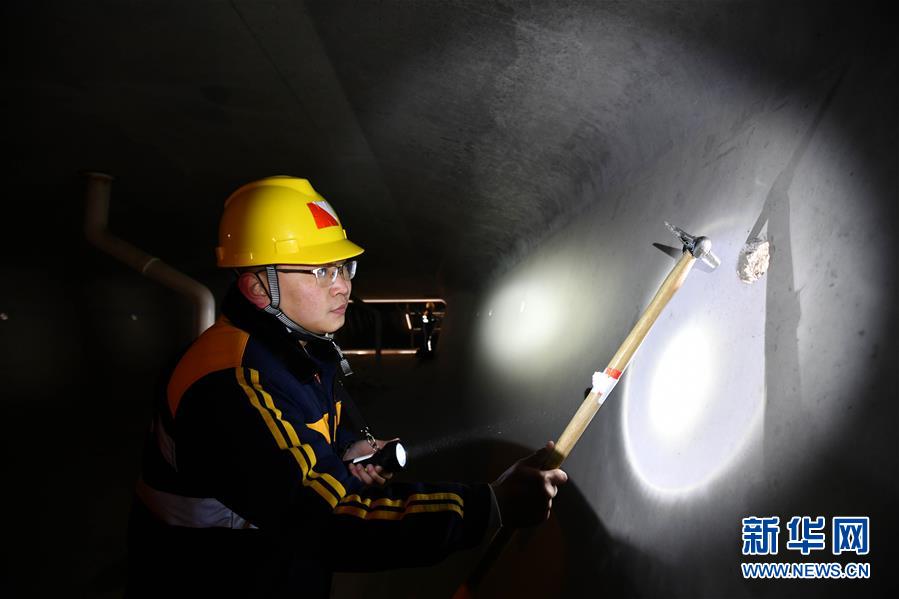 1月3日,中國鐵路濟(jì)南局臨沂工務(wù)段工程技術(shù)員畢雨佳在沂河特大橋箱梁內(nèi)檢查。新華社記者 朱崢攝