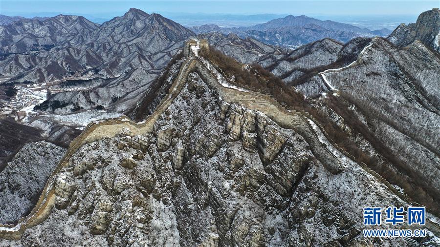 這是1月7日拍攝的北京箭扣長(zhǎng)城雪景(無(wú)人機(jī)照片)。近日,北京迎來(lái)降雪天氣。雪后的箭扣長(zhǎng)城內(nèi)外,惟余莽莽,蔚為壯觀。  新華社記者 陳曄華 攝