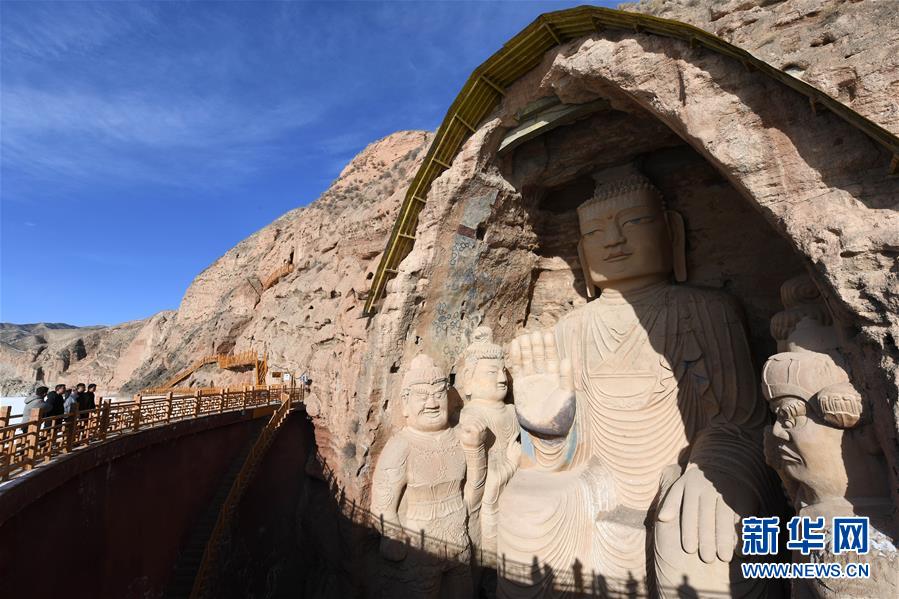 1月11日,游客在參觀天梯山石窟13號窟。新華社記者馬寧攝