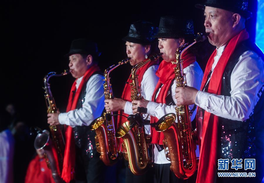 1月14日,杭州市余杭區(qū)中泰街道中橋村的文化公園內(nèi)在進行“我們的村晚”薩克斯表演。臨近春節(jié),浙江省杭州市余杭區(qū)中泰街道各村社的文化禮堂紛紛上演“我們的村晚”。老百姓自編、自導(dǎo)、自演為主的“土味”聯(lián)歡會因接地氣、親情濃而深受當(dāng)?shù)匕傩盏南矏郏蔀楫?dāng)?shù)剜l(xiāng)村百姓的新年迎春“文化大餐”。近年來,中泰街道以文化振興助推鄉(xiāng)村振興。目前,中泰街道下屬各村陸續(xù)建成文化禮堂7個、社區(qū)文化家園2個,努力培育和挖掘出一批鄉(xiāng)土文化人才及原創(chuàng)作品,2019年全年開展各類鄉(xiāng)村社區(qū)惠民文體活動累計180余場次。新華社記者徐昱攝