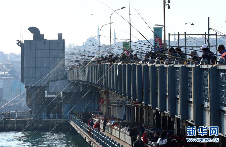 1月14日,在土耳其伊斯坦布爾,人們在海邊垂釣。 近日,土耳其最大城市伊斯坦布爾的氣溫轉暖,不少垂釣愛好者來到海邊,享受冬日的暖陽和垂釣的樂趣。 新華社記者 徐速繪 攝