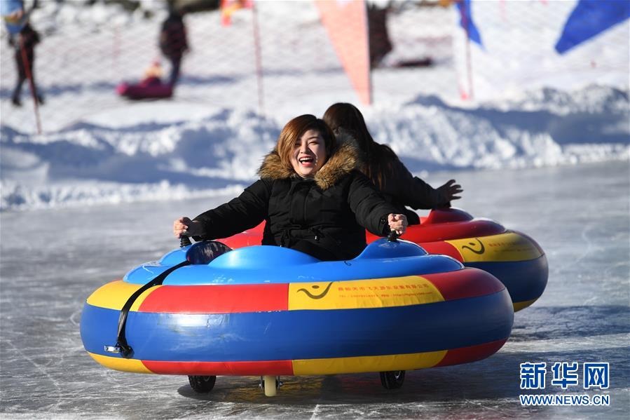 1月18日,游客在新疆天池景區(qū)玩電動(dòng)碰碰車。新華社記者 沙達(dá)提 攝