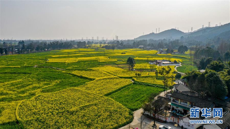 2月25日在四川省崇州市拍攝的油菜花田(無人機照片)。 新華社記者 王曦 攝