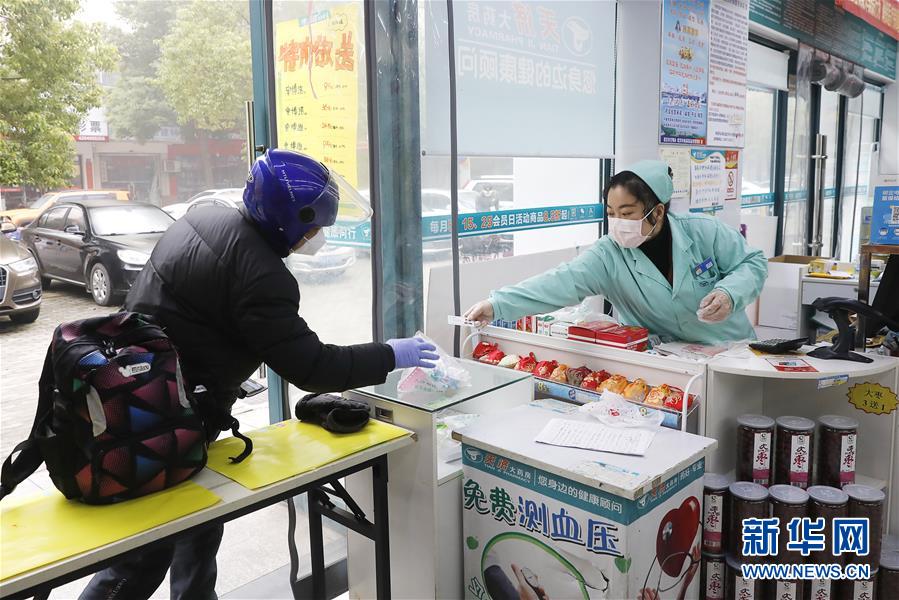 2月22日,王春波將藥品遞給前來買藥的外賣騎手。王春波是武昌天濟大藥房錦繡江南店的一名店員,在武漢下達“所有小區(qū)全面實施封閉管理”的禁令之后,很多居民買藥成了麻煩事,尤其是獨居的老年人。她知道后,主動聯系物業(yè)告知大家,如果有需要,她可以上門送藥?,F在,她和同事每天要派送100多單藥品,大部分都是“三高人群”服用的藥。很多顧客很感激王春波,“幸虧你們一直開業(yè),東西也齊全,一分錢都沒漲!”王春波說:“關鍵時期,大家都是在相互幫忙,這就是很平常、很普通的一件事?!毙氯A社記者熊琦攝