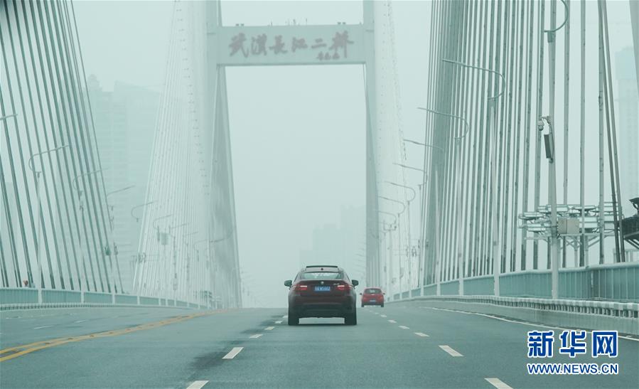 2月26日,劉女士開車送餐經過武漢長江二橋。新華社記者程敏攝
