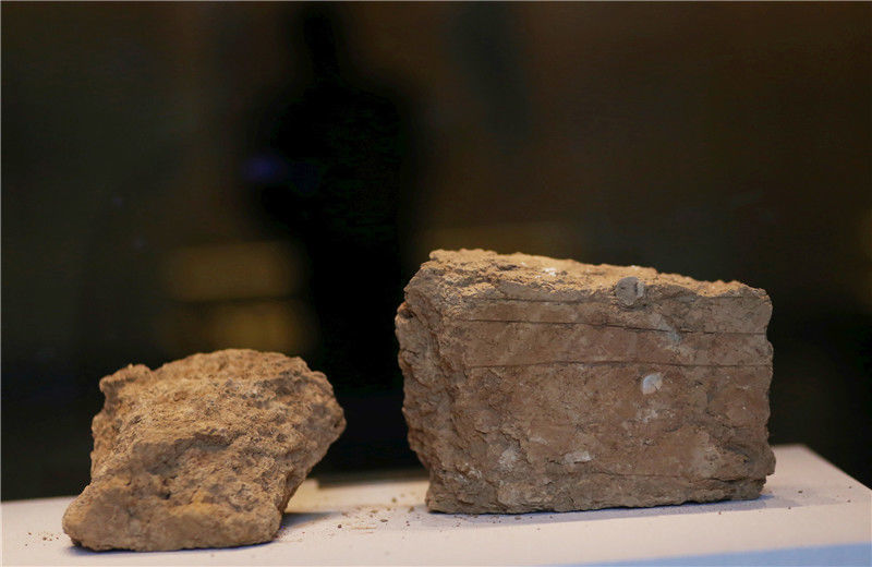2019年10月19日,河南洛陽,二里頭夏都遺址博物館。當(dāng)年建筑使用的夯土。