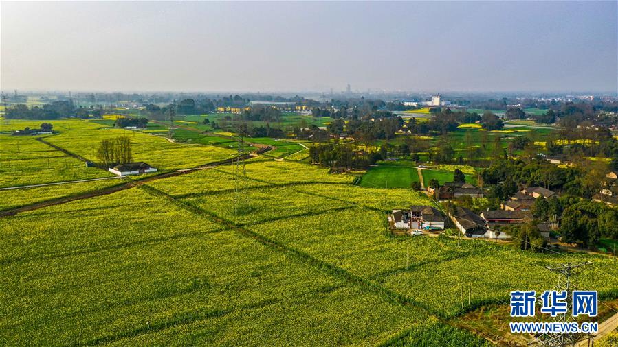 2月24日在四川省大邑縣安仁鎮(zhèn)永興村拍攝的油菜花田(無人機(jī)照片)。新華社記者王曦?cái)z