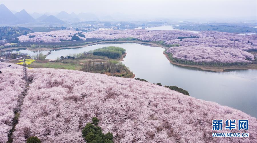 3月12日拍攝的貴安新區(qū)櫻花觀光園風(fēng)景(無(wú)人機(jī)照片)。 近日,貴州省貴安新區(qū)櫻花觀光園內(nèi)櫻花競(jìng)相盛開(kāi),花團(tuán)錦簇間春意盎然。據(jù)介紹,疫情防控期間,為避免人群聚集,櫻花園暫不接待游客。 新華社記者 陶亮 攝