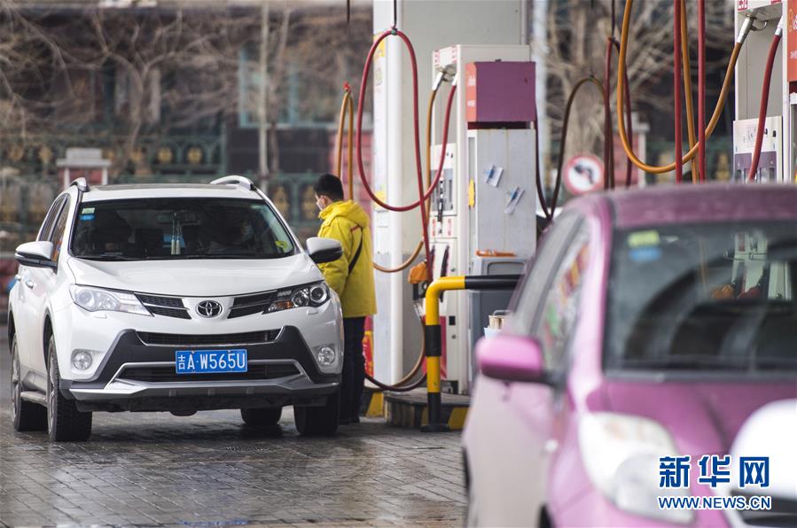 3月17日,吉林省長(zhǎng)春市一處加油站工作人員為車輛加油。 新華社記者 許暢 攝