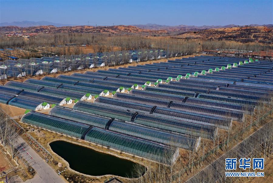 這是3月18日拍攝的中國(guó)鐵路太原局集團(tuán)有限公司新創(chuàng)云竹生態(tài)農(nóng)業(yè)園內(nèi)的蔬菜大棚(無人機(jī)照片)。 新華社記者 曹陽(yáng) 攝