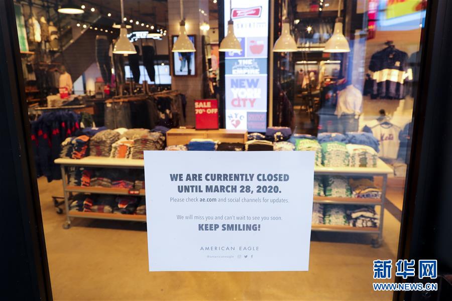 3月21日,在美國(guó)紐約時(shí)報(bào)廣場(chǎng),一家服裝店貼出閉店告示。美國(guó)紐約州、伊利諾伊州、康涅狄格州20日發(fā)布針對(duì)本州居民的“居家令”,以遏制新冠病毒傳播。這些“居家令”涵蓋紐約、洛杉磯、芝加哥等大城市,影響數(shù)千萬人。白宮20日發(fā)表聲明說,總統(tǒng)特朗普已宣布紐約州出現(xiàn)“重大災(zāi)難”,命令聯(lián)邦政府支援該州抗擊新冠肺炎疫情。新華社記者王迎攝