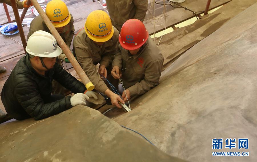工人在搭建腳手架(10月19日攝)。圖中下方顯示,大佛腳趾有明顯的破損。經(jīng)過17天緊張施工,10月25日下午,正在“體檢”的樂山大佛腹部以下的腳手架搭設(shè)完畢,這表明大佛“體檢”已觸達(dá)胸腹部及頭部等核心區(qū)域。新華社記者張超群攝