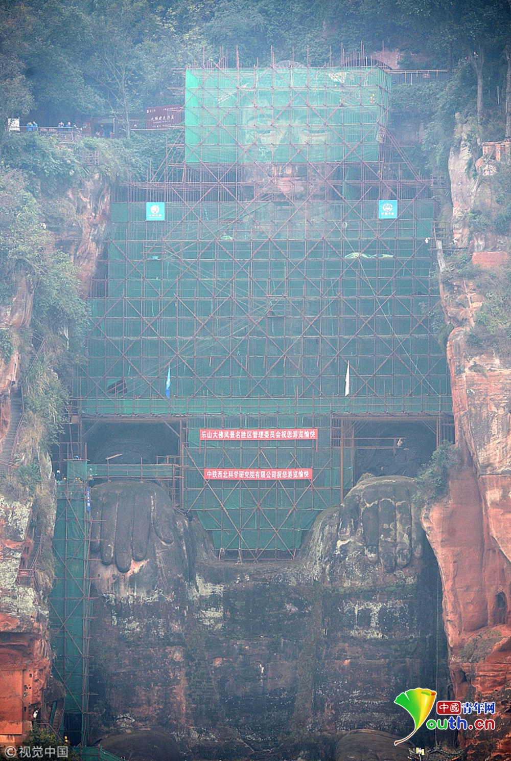樂山大佛本體已全遮蔽胸腹開裂病害原因基本查明
