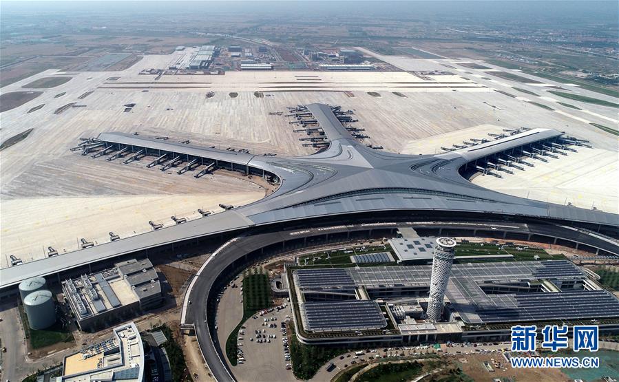 建設(shè)中的青島膠東國(guó)際機(jī)場(chǎng)(6月12日無(wú)人機(jī)拍攝)。新華社記者李紫恒攝