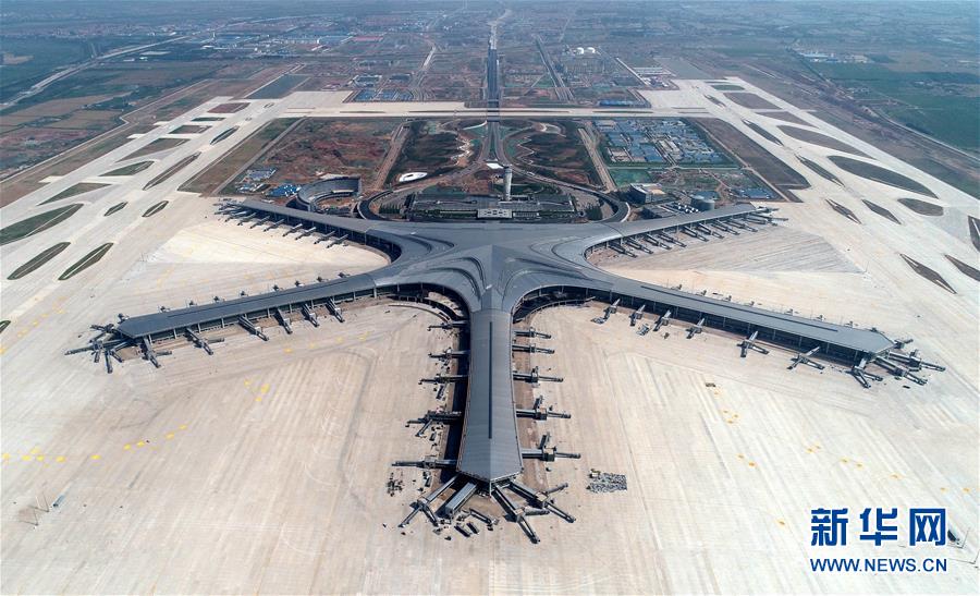 2019年6月12日無人機拍攝的建設中的青島膠東國際機場。新華社記者李紫恒攝