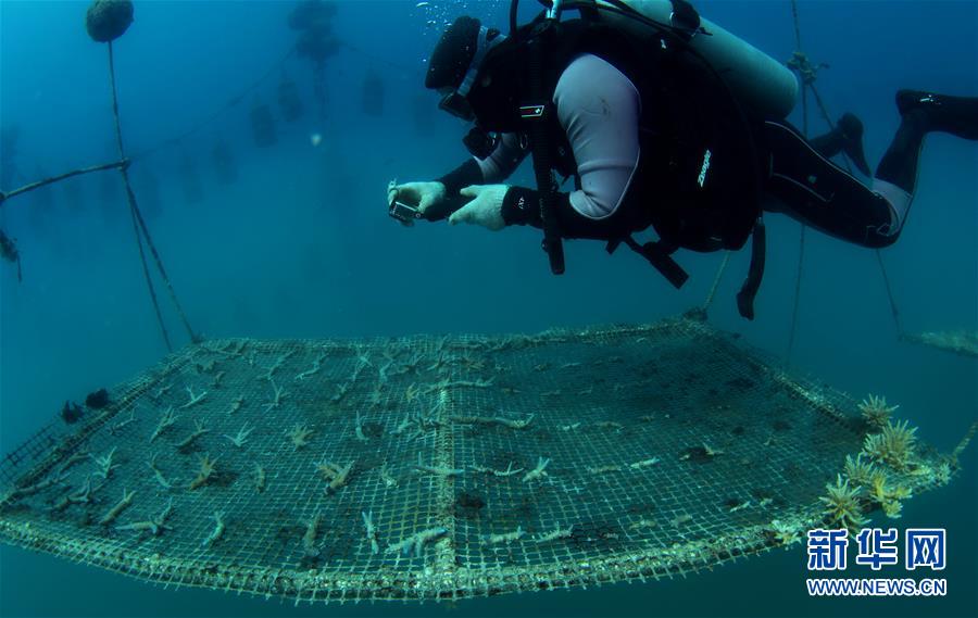 3月28日,在位于海南三亞蜈支洲島旅游區(qū)的海洋牧場,工作人員在進行巡護記錄。近日,位于海南三亞蜈支洲島旅游區(qū)的海洋牧場復(fù)工,海底作業(yè)逐漸恢復(fù)正常,開始進行人工魚礁吊裝擺位、水下監(jiān)控清理以及日常巡護等工作。據(jù)介紹,人工魚礁有利于魚類種類增加和數(shù)量提高,蜈支洲島海域海洋牧場人工魚礁表面附著珊瑚、貝類、藻類等生物種類達120余種。新華社記者楊冠宇攝