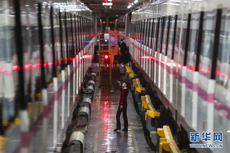 3月28日,武漢地鐵運(yùn)營有限公司司機(jī)吳亞在常青車輛段檢查車輛情況。新華社記者沈伯韓攝