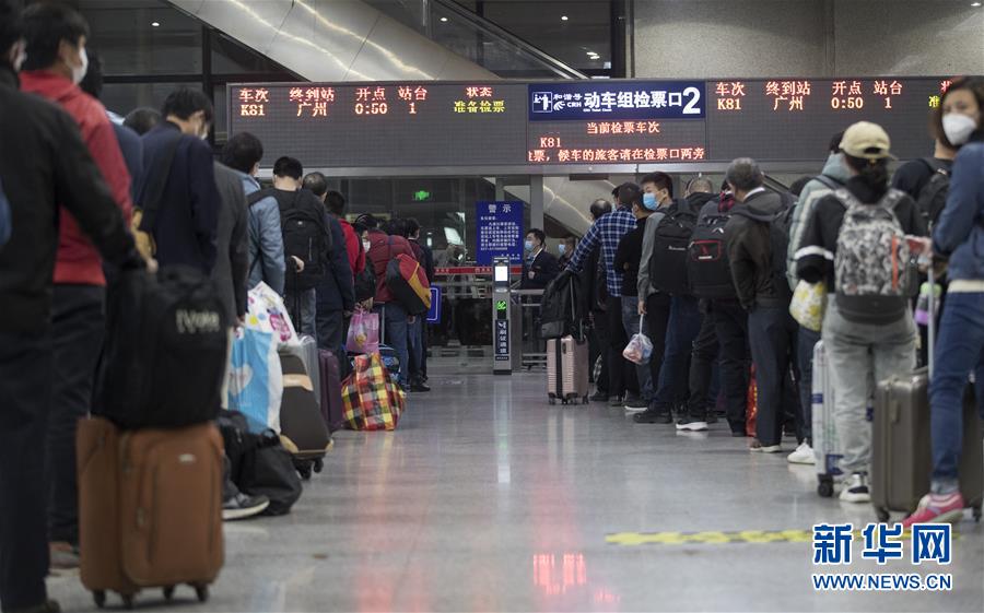 4月8日凌晨,乘客在武昌火車站排隊(duì)等候K81次列車。 新華社記者 費(fèi)茂華 攝