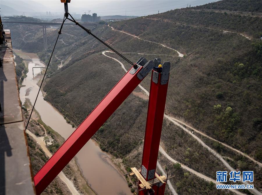 中老鐵路元江特大橋“邁”過(guò)第一高墩