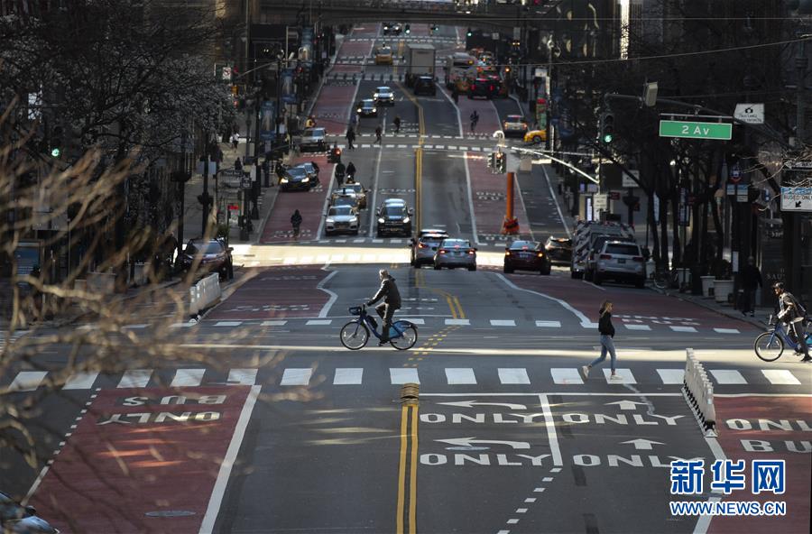 3月21日,在美國(guó)紐約,以往繁忙的街道上車(chē)輛寥寥。新華社記者王迎攝