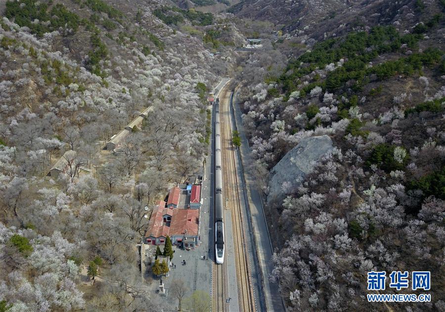 4月8日,北京青龍橋火車站附近春花盛開(無人機照片)。 當日,北京青龍橋火車站附近,春花綻放,為這座百年火車站增添濃濃春意。 新華社記者張晨霖攝