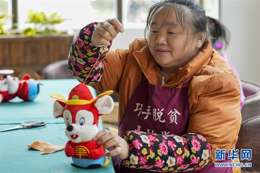 4月8日,在重慶石柱中益鄉(xiāng)巾幗扶貧工坊,一名當(dāng)?shù)貗D女在縫制文創(chuàng)產(chǎn)品。近年來,重慶市石柱土家族自治縣中益鄉(xiāng)在重慶市婦聯(lián)的幫助下,以當(dāng)?shù)胤沁z傳統(tǒng)技藝作為結(jié)合點,把扶貧與扶志、扶智相結(jié)合,通過引進(jìn)外來文創(chuàng)企業(yè)對留守婦女、貧困及殘疾人群進(jìn)行刺繡培訓(xùn),設(shè)立巾幗扶貧工坊等多種形式,幫助當(dāng)?shù)卮迕駥崿F(xiàn)就業(yè)增收。據(jù)介紹,巾幗扶貧工坊運(yùn)行以來,為當(dāng)?shù)仃懤m(xù)開發(fā)出土家族布老虎、手提袋、餐墊繡邊、創(chuàng)意相框等一系列文創(chuàng)產(chǎn)品,幫助參加巾幗扶貧工坊的留守婦女和貧困村民實現(xiàn)月均增收近千元。新華社記者劉潺攝