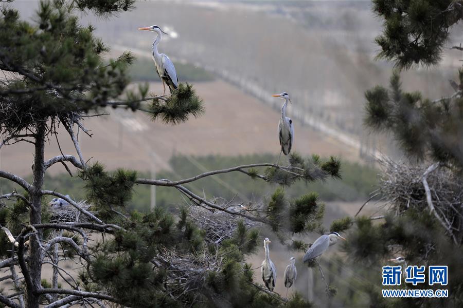 春日,大批蒼鷺在山西省呂梁市方山縣積翠鄉(xiāng)的樹林之中飛舞嬉戲,構(gòu)成一幅幅和諧生態(tài)畫卷。新華社發(fā)(劉亮亮攝)