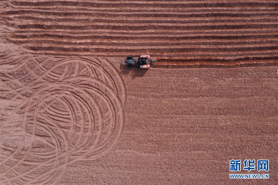 4月15日,農民操作機械在杭錦旗道勞呼都格嘎查的農田里翻地,為種植紅蔥做準備(無人機照片)。春種時節(jié),在內蒙古鄂爾多斯市杭錦旗道勞呼都格嘎查,農民忙著播種紅蔥。在鄂爾多斯高原種植的紅蔥耐旱耐寒,具有較好的經濟效益。新華社記者徐欽攝