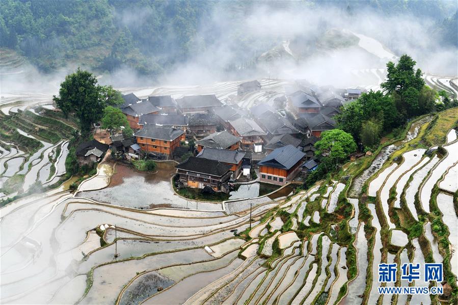 貴州省從江縣加榜鄉(xiāng)黨扭村苗寨景觀(guān)(4月17日攝)。貴州省從江縣把人居環(huán)境整治作為脫貧攻堅(jiān)工作的一項(xiàng)重要舉措來(lái)抓,對(duì)鄉(xiāng)村規(guī)劃范圍內(nèi)長(zhǎng)期無(wú)人居住的危房、廢棄禾倉(cāng)、棚圈、柴草房和房前屋后的殘?jiān)珨啾诘冗M(jìn)行清理整治,進(jìn)行復(fù)墾復(fù)綠,同時(shí)開(kāi)展農(nóng)戶(hù)衛(wèi)生和村寨環(huán)境整治,做到鄉(xiāng)村環(huán)境干凈、衛(wèi)生、整潔,扮靚美麗鄉(xiāng)村。新華社記者楊文斌攝
